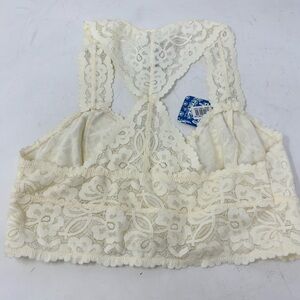 New FREE PEOPLE INTMATELY Women’s Ivory Galloon Lace Halter Bralette Bra Size S