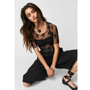 New FREE PEOPLE Minnie Set $148 SIZE 0 Black WIDE-LEG LONGLINE SHORTS