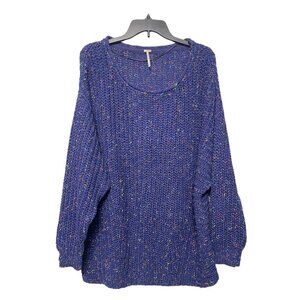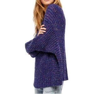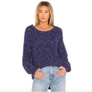 New FREE PEOPLE Neon Lights Cotton Blend Pullover Sweater in Midnight Size S