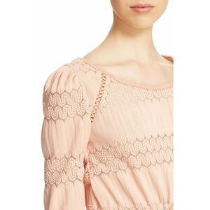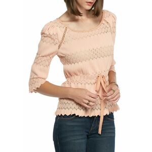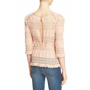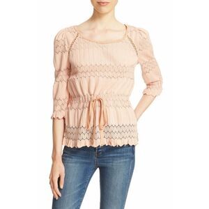New! FREE PEOPLE Retro Openwork Lace Keyhole Top Blouse Color Peach Size Medium