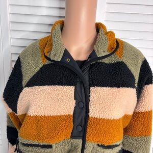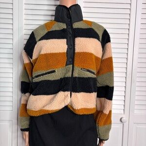 Details: This FP Movement by Free People jacket is crafted from super-soft fleece, and is detailed with a mix of earth-tone stripes and abstract patterning in back.