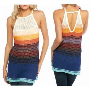 New! FREE PEOPLE Striped Sleeveless Boho Tunic Tank Top V-Back Airy