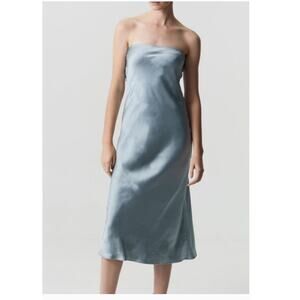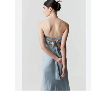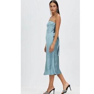 New FREE PEOPLE Third Form Satin Tie Back Strapless Dress $280 SIZE 10 Blue