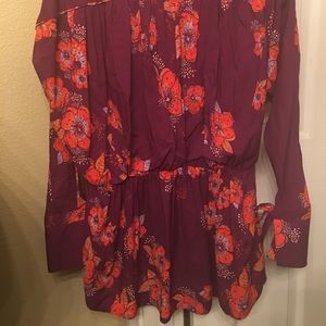 New FREE PEOPLE Long Sleeve Tuscan Dreams with flowers, Tunic Sz MED with ties on sleeve above hand, double mock front liner. Can wear as a top or dress as shown in pix, approx 29” Long front and 33” back, laid flat. Never Worn NWT