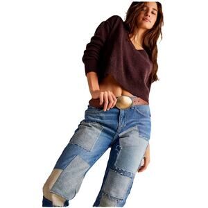 New FREE PEOPLE We The Free Bare With Me Jeans $298 SIZE 25 PATCHWORK DENIM