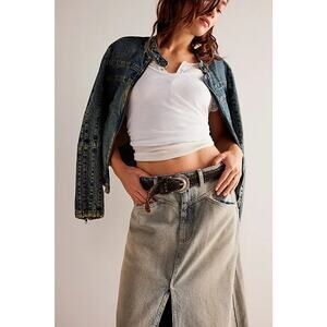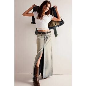 New FREE PEOPLE We The Free Come As You Are Denim Maxi Skirt