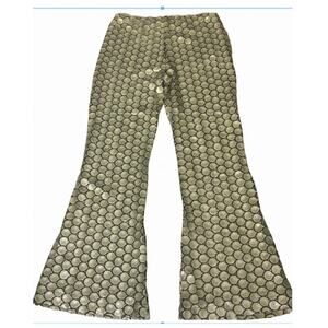 New FREE PEOPLE Wilder Days Sequin Flare Pants $198 SIZE 4 Gold/Olive