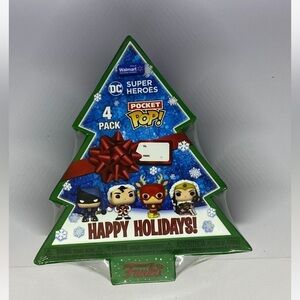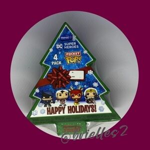 🌸 New FUNKO POP! DC Super Heroes Pocket Pops! Set of 4, Christmas Holiday