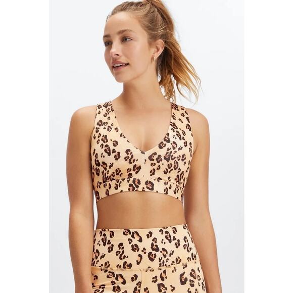 New Fabletics On-The-Go Midi Sports Bra II Desert Leopard size M