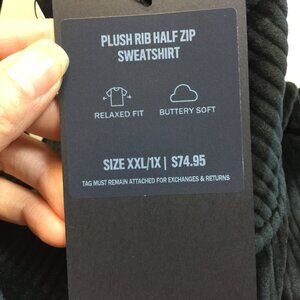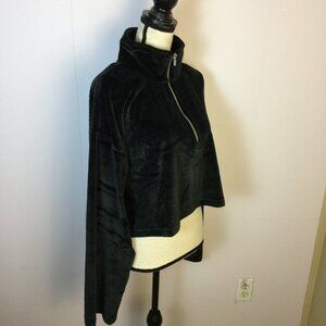 NWT Fabletics Sweatshirt XXL/1X Womans Black Plush Rib Velour Cropped Half Zip