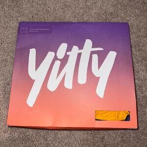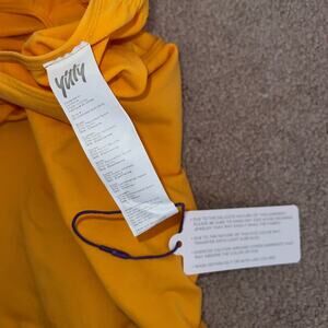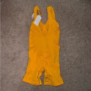 Yitty by Fabletics Nearly Naked Seamless Shaping Mid Thigh Bodysuit, new with tags still attached and will come in packaging as shown, color is mimosa (light orange) similar to photos, medium compression, material made of recycled nylon, nylon, and elastane, sizing chart on back of package, size M/L womens