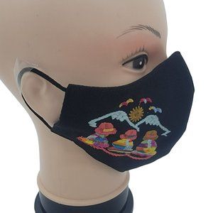 New Face cover ear loop black Mask Women's Embroidered handmade women mountains design