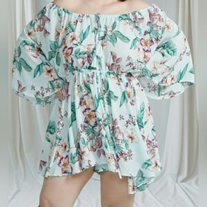 Absolutely Beautiful Women's Plussize Size New With Tags Soft Stretch Fairycore French Countryside Farmhouse Cottagecore Floral Flowy Slip-On Romper Oversized Swing Beach Cover-up Packable Comfortable Lightweight Washable Cruise Festival Pastel New With Tags Bohemian Gypsy Festival Vacation Cruise Pool Party Vagas Going Out Brunch BBQ Coastal Cowgirl Cover-up Chowchilla Concert Boardwalk Shore Coastal Date Night Off The Sholder Romantic Ruffle Romper