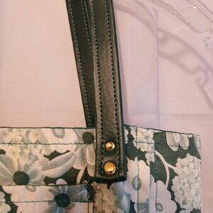 New Fall Floral Tote Shopper shoulder Bag Green White Double handle Carryall