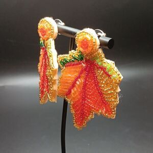 Cealxheny Thanksgiving Fall Beaded Handmade Drop Dangle Maple Leaf Earrings. Lightweight and Comfortable To Wear. They Weigh 0.2oz Each. Made Of Quality Alloy Tiny Beads And Felt Covered On The Back. Nickle And Lead Free. They are 2.5" long and 1.5" wide
