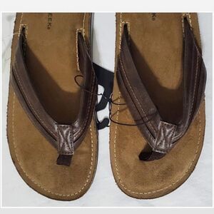 NWT Falls Creek Adam size 9 slip-on toe thong slides. Elevate your summer relaxed vibe footwear game on trend surf style! Features natural tan brown, durable faux leather upper strap, faux suede foot bed, padded foot bed, arch support, & rubber outsoles bottoms. Perfect for beach, pool, strolling around town, or any casual outing! No box. Ask any questions before purchasing. Enjoy buying from an Ambassador II. Same or Next Day Shipping 🎁 Hit the buy now button, Make an Offer, or Bundle to Save 😊💕 All sales final & sold as is.