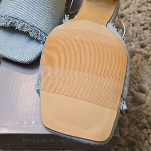 New in Box, Falls Creek women's size 7 lightwash denim slide, 3 inch chunky Heel, padded footbed, excellent condition