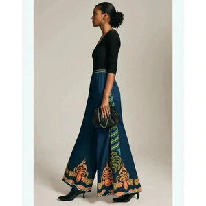 New Farm Rio Anthropologie High Rise Wide Leg Trouser Pants Tropical