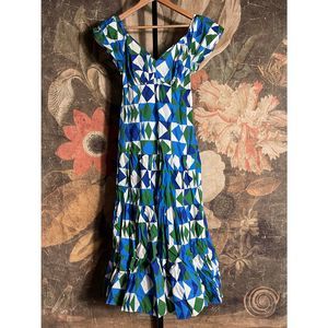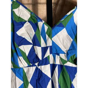 With its vibrant geometric print, this maxi dress is a wearable work of art, calling to mind sunny days by the sea and aperitifs al fresco.