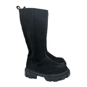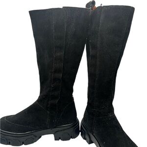New Farm Rio Tall Boot Lug Chunky Sole Black Faux Suede