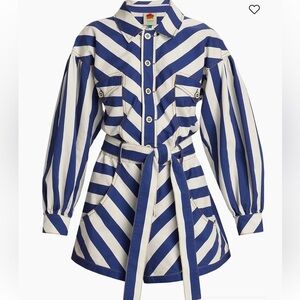 New! Farm rio large blue combo striped long sleeve romper. Elasticized waist for flexibility, waist tie, front buttons , Gorgeous.