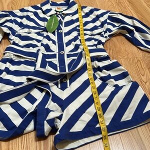 New! Farm rio Large blue combo striped long sleeve romper.