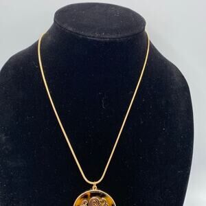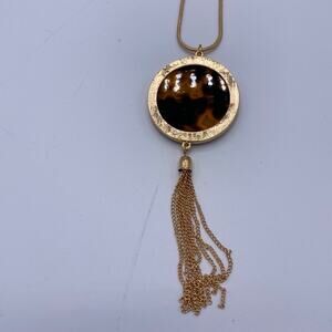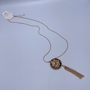 Fashion Jewelry Tortoiseshell Disk Pendant Monogrammed Letter E Necklace