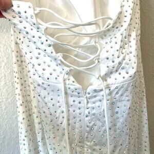New Fashion Nova Novalux White Studded Strapless Maxi Dress Gown Size 2X