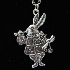 This new fashion necklace has a 1.5 inch long White Rabbit pendant from Alice in wonderland. The silver tone necklace is 20 inches long.