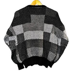 New Fast Long Crop Grandpa Sweater Color Blocked Black Gray Women's Size Medium