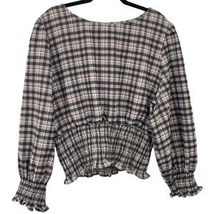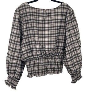 New Fate + Fortune Women’s Flannel Plaid Blouse Size XXL Elastic Waist Boat Neck