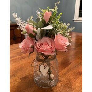 Artificial flowers in a vase: includes five silk roses, artificial eucalyptus, Flocked Lambs Ear, fake plants and vases. The glass vases are decorated with heart and globe pendants and twine. The perfect combination of bouquets and vases, the rustic style is perfect for farmhouse decorations, coffee table decorations, and dining room centerpieces.