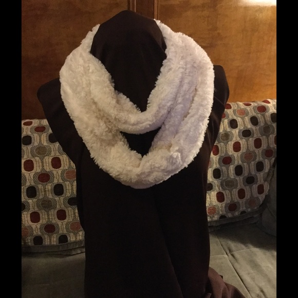 New Faux Fur Cream Scarf; wrap around Scarf;polyester & cotton