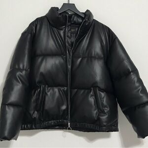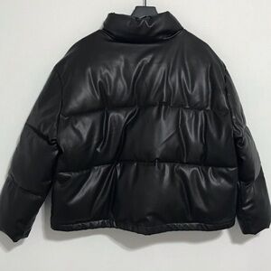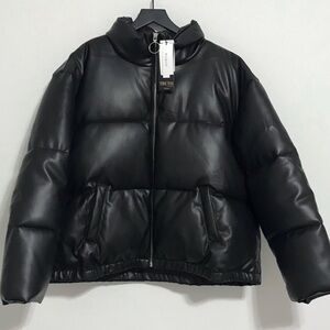New! Faux Leather Puffer Vegan Leather Black Zip Up Winter Plus Size Jacket