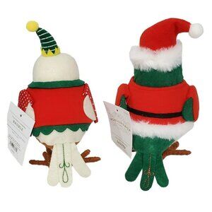This set of two original, seasonal bird figurines is part of the Featherly Friends Spritz Bird collection from Target Wondershop and is suitable for decoration during the Christmas season and beyond. Add a touch of whimsy to your home with these charming birds, which feature a red, green, and yellow elf outfit and hat. Their features make them a must-have for collectors and bird lovers alike.