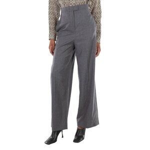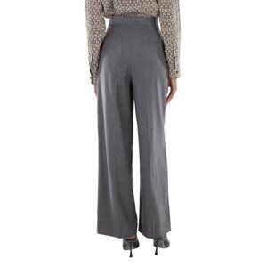 Fendi High-Waisted Tailored Palazzo Wool Pants. High-waisted, tailored palazzo pants with a pressed crease, inset side pockets, and back welt pockets. They feature a concealed zip and small hook fastening, crafted from light grey melange wool flannel. 100% Wool. Made in Italy.