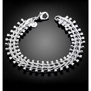 New Fine Geometric Spike Link Bracelet, 925 Plated Silver Color, Unisex 20CM