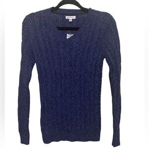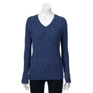 Women’s Croft & Barrow Cable Knit Navy Seal Marl Fisherman Cotton Sweater Preppy Nautical Coastal Grandma Super Soft 100% Cotton NWOT