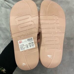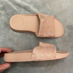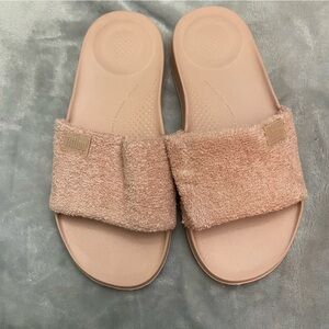 New! FitFlop Womens Iqushion Towelling Slides Beige Size 6