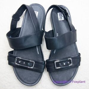 New! FitFlop women's Gracie Stud-Buckle Back-Strap Sandals Leather black, size 7