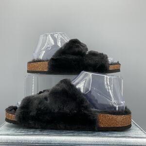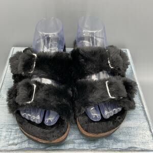 New Fitory Women’s Open Toe Slipper With Faux Rabbit lining Black Size 8