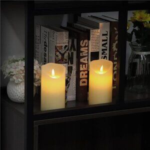 New Flameless Candles 6" Set of 2 Ivory Dripless Real Wax Pillars Realistic