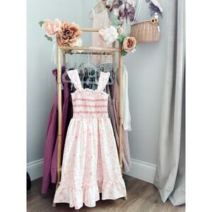 New Floaty Blooming Floral Smocked Flowy Twirl Maxi Dress 7/8