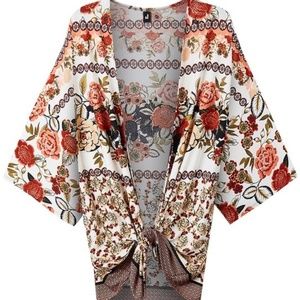 New Floral Coral, Ivory, Kimono Beach Cover Top