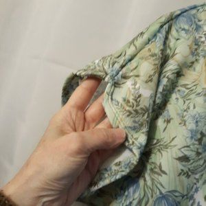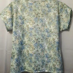New Floral Knit Blouse M Mint Blue Scoop Dolman Short Sleeve Top Light & Breezy