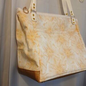 New Floral Satchel shoulder Bag Gold Yellow Brown Double handle Carryall 10x10x5