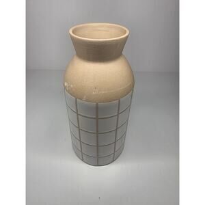 New Flower Market Ceramic Container Vase Tan White Tiles Square Grid