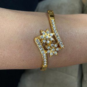 Flowers Bracelet CZ crystal. Brand New. Never Worn. Diameter: 2.5 inch Color: Yellow Gold Metal: Alloy