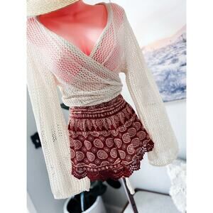 New Flowy boho relaxed gauzy crochet trimmed terracotta festival shorts M
