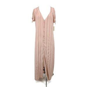 New Flynn Skye Ale Maxi Dress Womens M Rose Pink Rayon Stripe Button Front